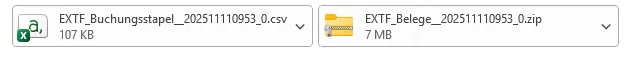 Eine .csv Datei und .zip Datei mit den Belegen.