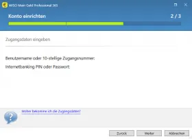 Das Eingabefeld für die Benutzerdaten zur Bank war so minimiert, dass die Eingabefelder nicht angezeigt wurden.