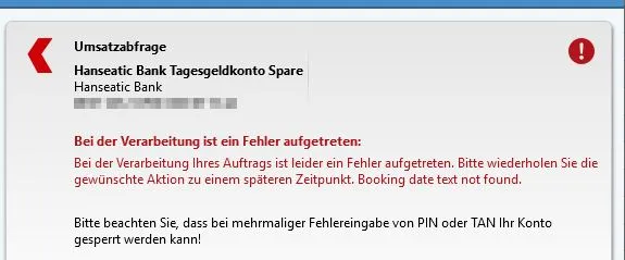 Hanseatic Bank "Booking date text not found"