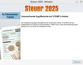 Ich wollte deshalb versuchen, die Aldi-Steuersoftware 2025 auf meinen Ubuntu-Rechner (Version 24.04) zu installieren, die Installationsroutine bricht jedoch ab mit der Meldung unzureichende Zugriffrechte auf %TEMP%-Ordner.