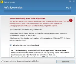 beim Versuch der Änderung / Löschung von Daueraufträgen erfolgt auch nach durchgeführter Bestandsabfrage und vorheriger Synchronisation des FinTS (HBCI) -Kontaktes seit Wochen die Fehlermeldung