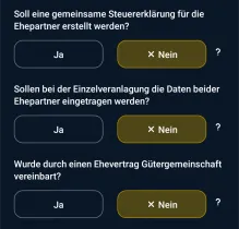 An meinem Lebensverhältnissen hat sich nichts verändert und ich habe exakt die gleichen Einstellungen wie bei der letzten Steuererklärungen verwendet (s. Screenshot). Warum fordert WISO jetzt auf einmal die Steuer ID von meinem Mann? Um überhaupt ein Eingabefeld für die Steuer ID zu bekommen, müsste ich diese Einstellungen ändern - und das will ich ja gar nicht, weil alles so bleiben soll.