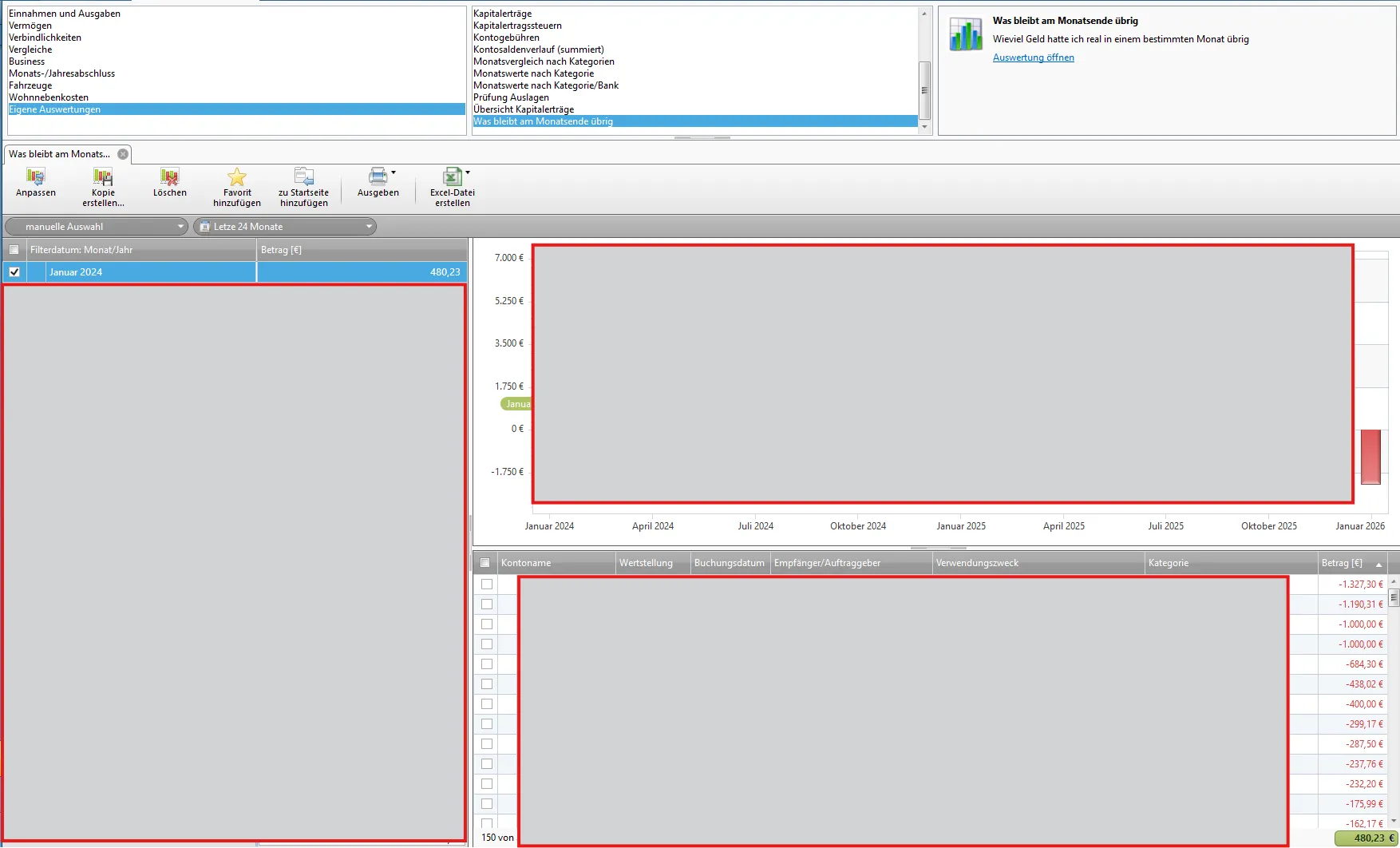 Auswertung was am Ende des Monats übrig bleibt