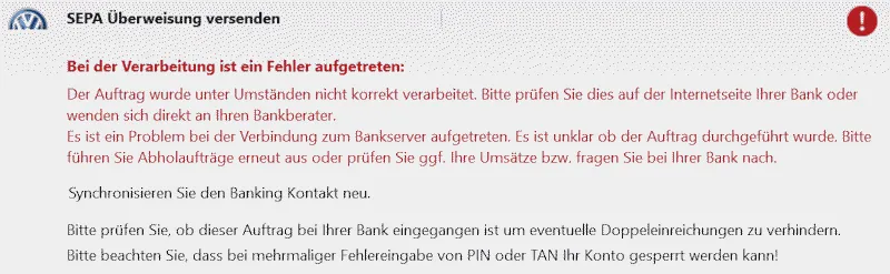 Den Banking Kontakt habe ich direkt und über die HBCI-Kontaktübersicht erneut synchronisiert. Hat aber beides nicht geholfen.
