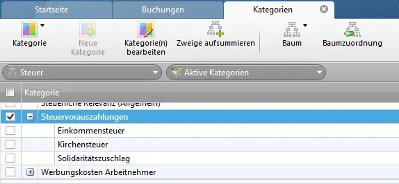 Ich schlage vor, die Steuerkategorie "Steuervorauszahlung zu erweitern um die beiden unterlagerten Kategorien: