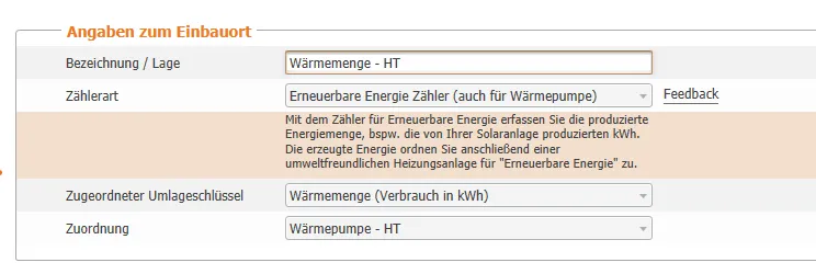 Selbst wenn ich mit fiktiven Wärmemengenzählern mit einem COP von 4 rechne, werden nicht beide Zähler berücksichtigt, da ich den hinterlegten Umlageschlüssel (der in der Zählermaske der Wärmepumpe im Programm automatisch hinterlegt aber ausgegraut ist) nicht in der Heizkostenabrechnung als Berechnungsgrundlage nutzen kann.
