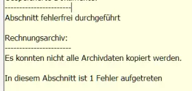 Im Protokoll erscheint die Meldung: "Es konnten nicht alle Archivdaten kopiert werden".