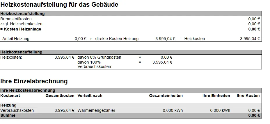 Heizkosten werden nicht auf der Nebenkostenabrechnung angezeigt