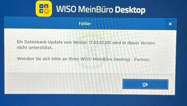 Ist die aktuell verwendete Version älter als 21.05.02.001, erstelle zunächst eine Datensicherung über "Datei > Datensicherung > Manuelle Datensicherung". Bitte prüfe unter "Hilfe > Online-Update" welche Programmversion dir zur Aktualisierung angeboten wird.Und hier die Quelle:
