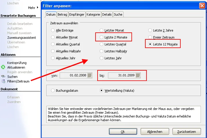 Obwohl ich MG schon seit einigen Jahren benutze erschrecke ich mich doch jedesmal aufs neue wenn nach einem Jahreswechsel bei den Buchungen keine Einträge auftauchen. Nach einigen Sekunden macht es bei mir dann Klick und ein Blick auf die Ansicht verrät mir warum das so ist.