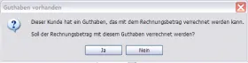 Dieser Kunde hat ein Guthaben, das mit dem Rechnungsbetrag verrechnet werden kann. Soll der Rechnungsbetrag mit diesem Guthaben verrechnet werden?
