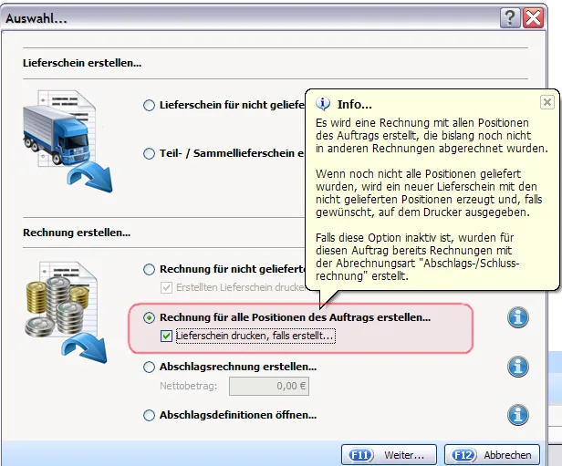Ich brauche zu jeder Rechnugn automatisch einen Lieferschein.