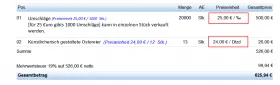 In der Rechnungseingabe gebe ich dann beispielsweise 1 Stück ein und die Rechnung spuckt dann 0,66€ aus.