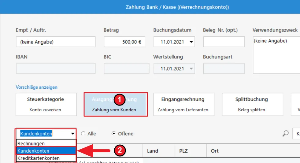 Hätte nicht gedacht, dass das so schwer ist, bzw. der Umweg über Finanzen / Zahlungen notwendig ist.