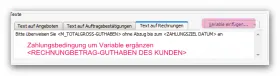 > Stammdaten > Kleinstammdaten > Zahlungsbedingung > Text auf Rechnung > Variablen