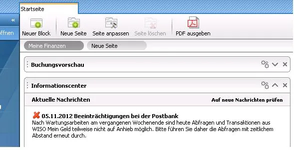 nachdem ich gestern WISO Mein Geld 2013 gestartet habe und eine Umsatzabfrage ausführen wollte, wurde zunächst ein Update heruntergeladen und installiert. Danach kam die Fehlermeldung das der Server wg. unbekannten Nutzer nicht reagiert. An der Postbank liegt es wohl nicht, da ich eine Überweisung via chipTAN dort ausführen konnte. Ist das Problem bekannt?
