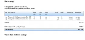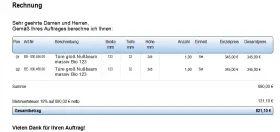 Die erste Rechnung gibt es schon im Angebot der Vorlage online. Die Bezeichnung lassen sich in der Druckansicht mit klick umbenennen. Dafür braucht man keinen Vorlagen Designer.