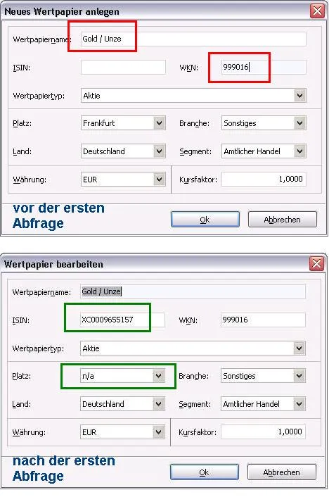 Ich arbeite beim Goldkurs mit der ISIN XC0009655157 und der WKN 030100. Damit hat es jahrelang funktioniert. Ich habe es nun auch schon mit der WKN XAUEUR und 999016 versucht. Beides brachte jedoch keinen Erfolg. Anscheinend macht sich die Kursaktualisierung an der ISIN fest.