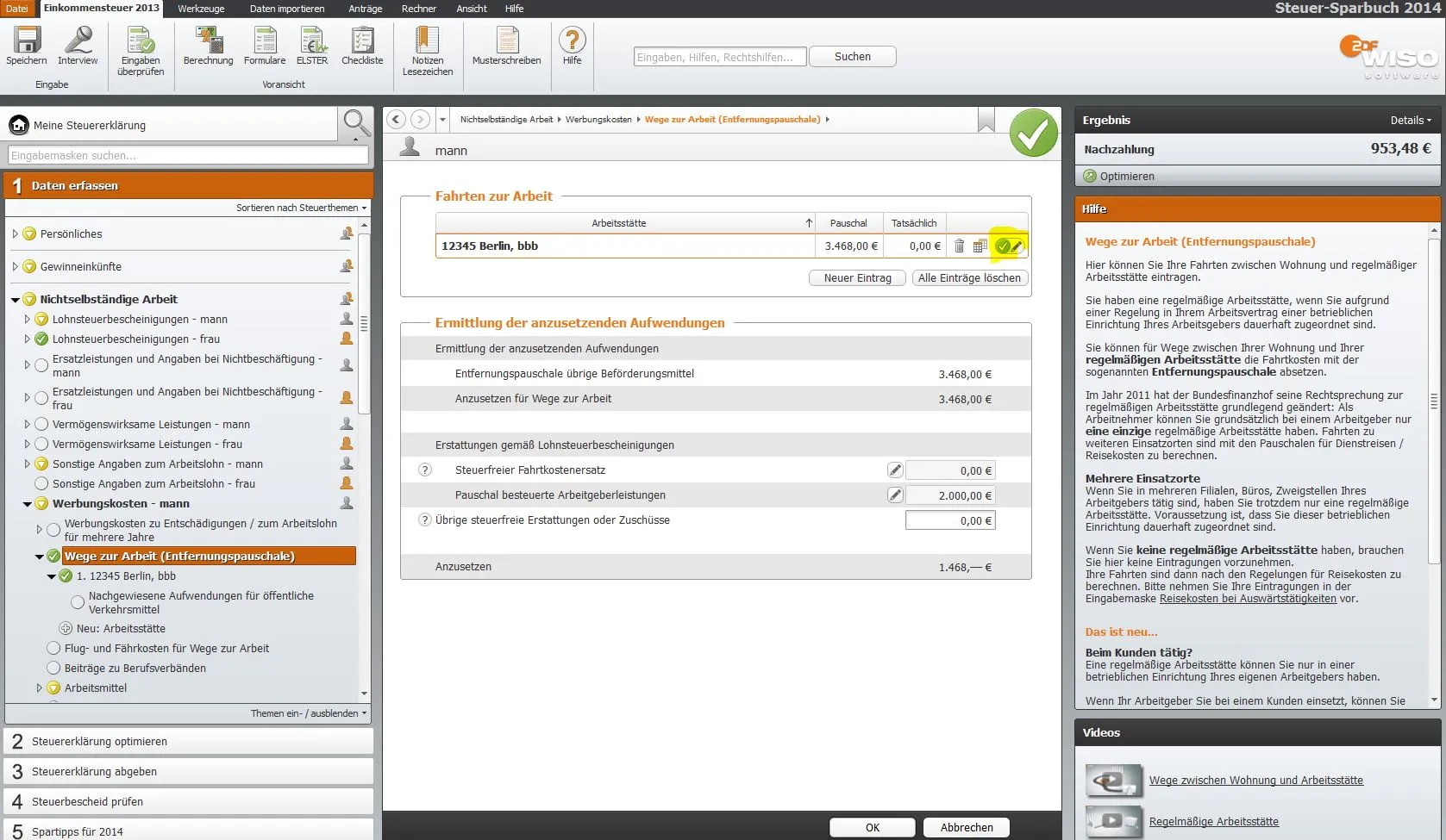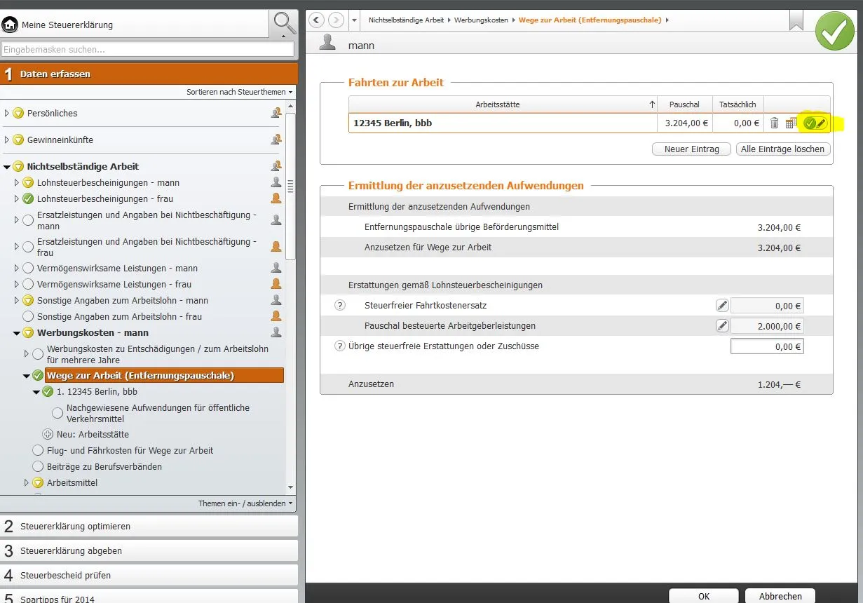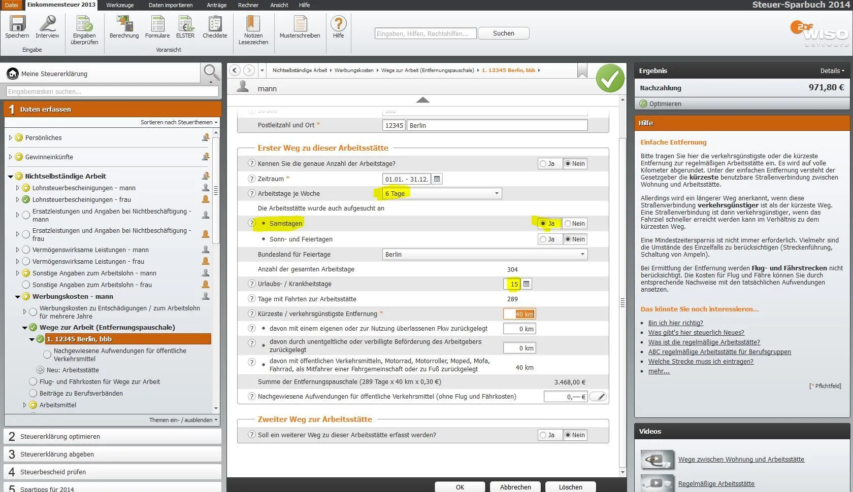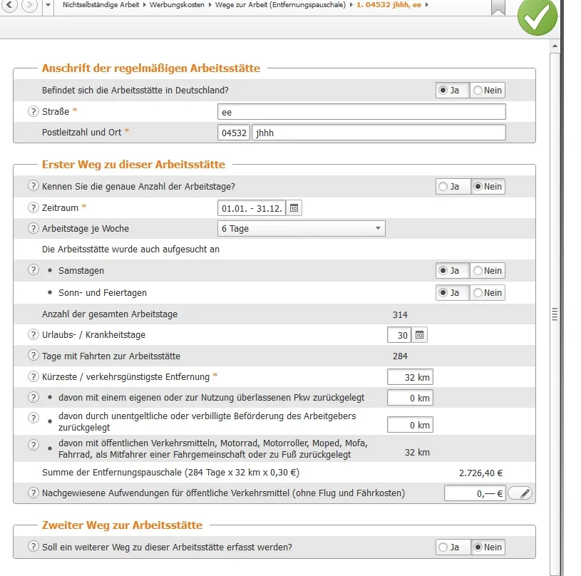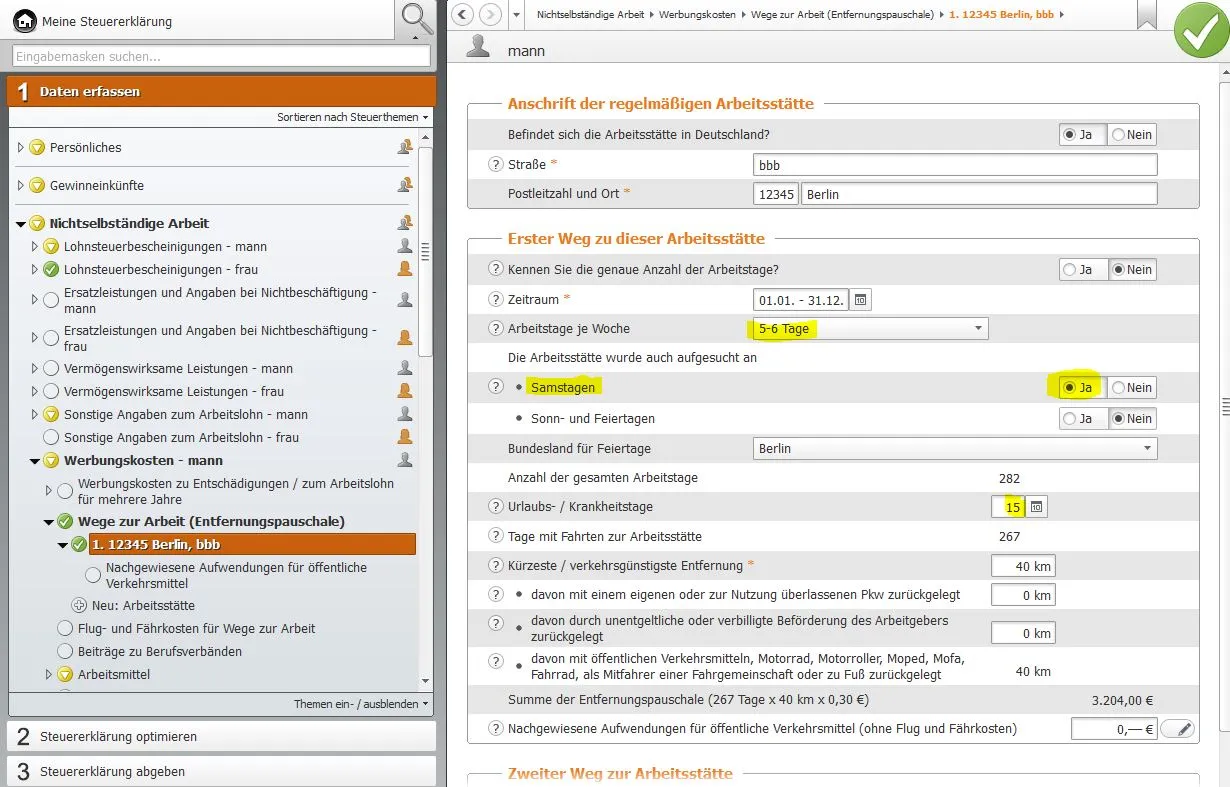 Bei der Überprüfung der Eingaben durch das Programm Wiso Sparbuch werden diese aber als Fehler angezeigt mit dem Hinweis ich hätte die Arbeitsstätte weder an Sa , So bzw Feiertagen aufgesucht. Ich kann aber bei direkter Eingabe keinen Punkt finden wo man die ankreuzen könnte.