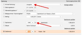 2. Eine Einnahme von 1000€ mit Sachkonto Geldtransit und Geldkonto Bank.