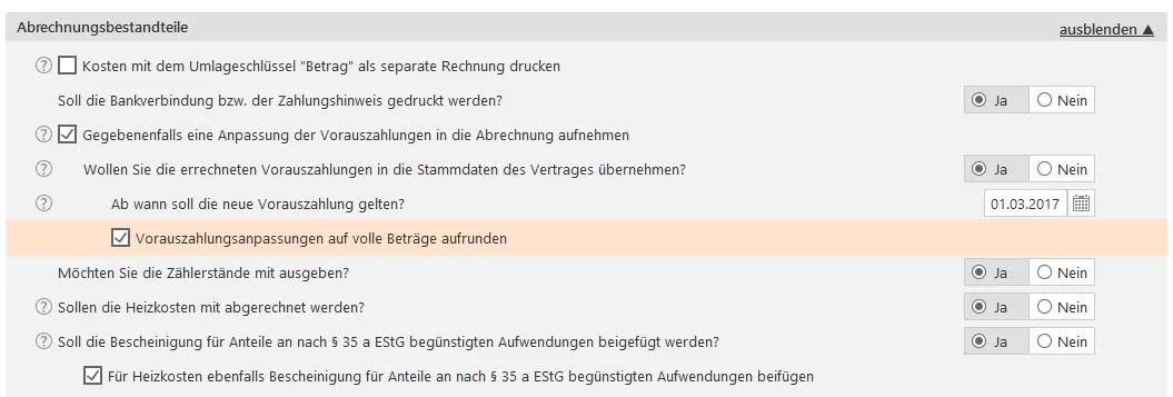Das verstehe ich nicht. Wenn man es so macht wie ich es oben aufgezeigt hat, dann wird die erhöhung ab einem selbst gewählten Datum erhöht und es aus Seite 1 der Abrechnung angezeigt.
