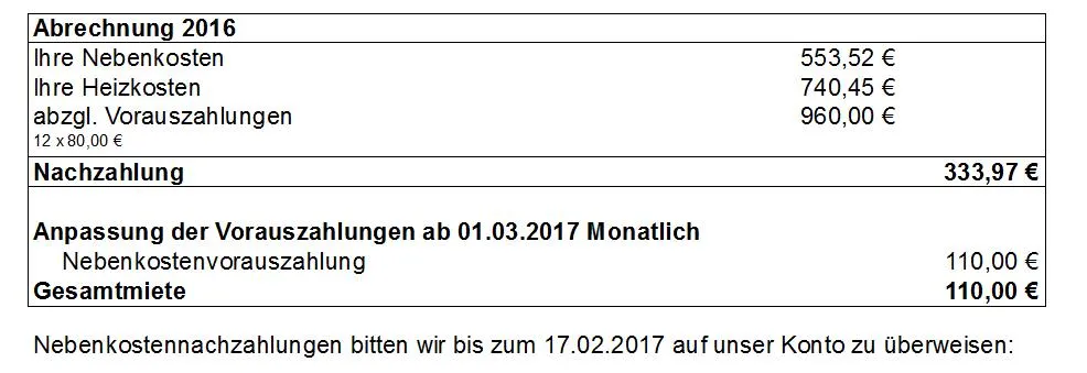 Ich hatte erwartet, dass der HV eine nötige "Anpassung der Vorauszahllung" berechnet, nicht ich.