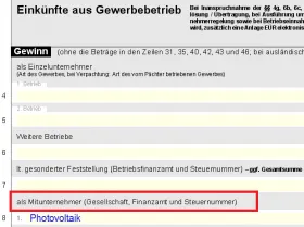 Anlage G - Einkünfte aus Gewerbebetrieb (Photovoltaikanlage)