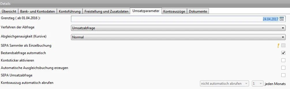 Ich benötige eure Hilfe bei einem Problem mit einem Girokonto DiBa; Zugangsart "FinTS (HBCI) PIN/TAN"; Umsatzparameter wie folgt: