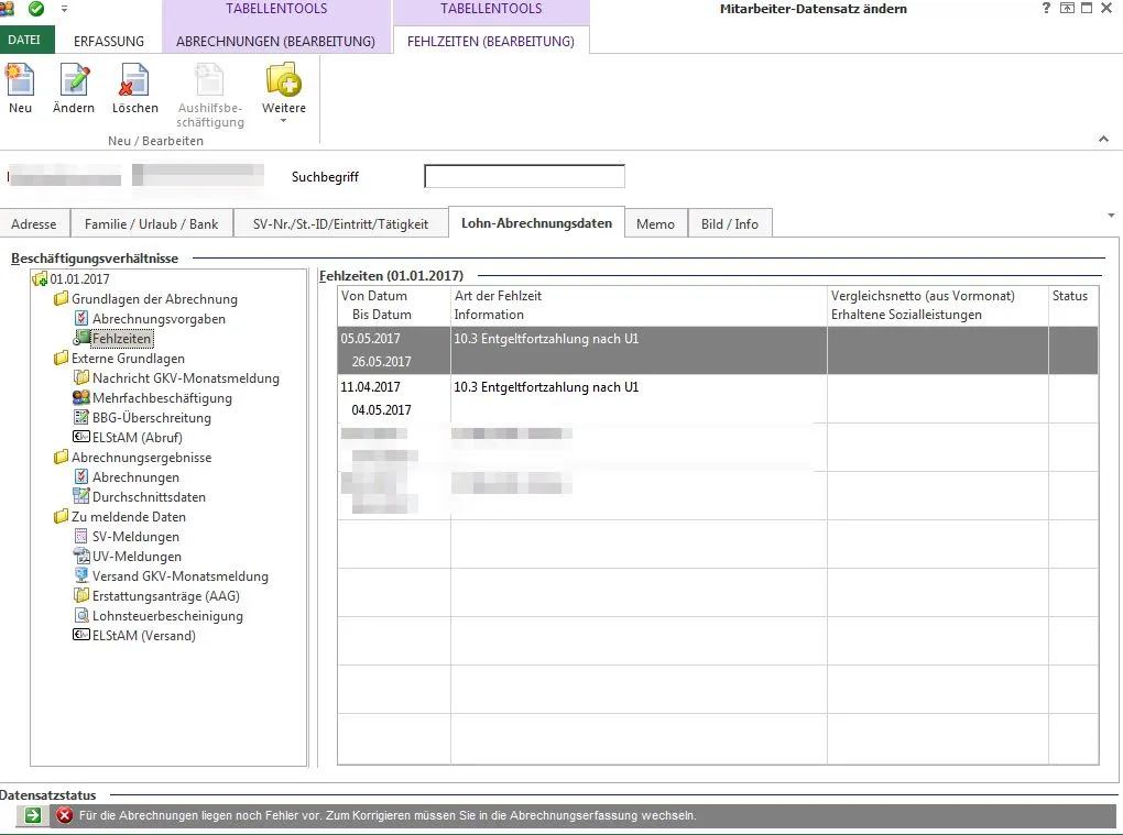 - Ich habe in der Unternehmersoftware im April die Fehlzeit vom 11.4. bis zum 4.5.17 erfasst. Die Software hat mir aber den Antrag auf die Erstattung nach U1 nur bis zum 30.4.17 erstellt. Das habe ich auch so über sv.net gemeldet.
