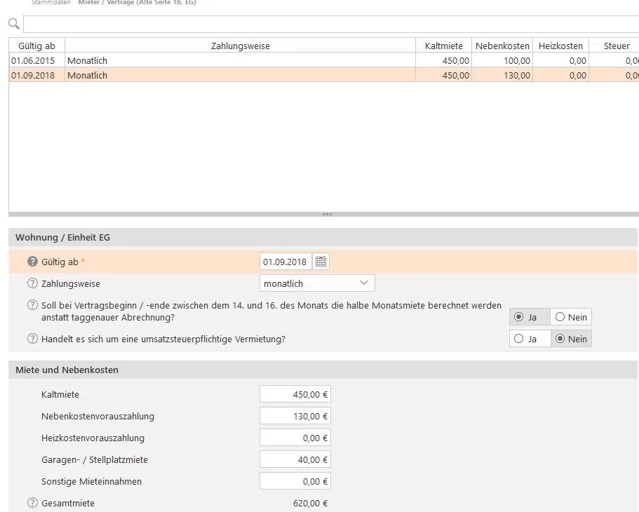 Gültig ab: 01.01.2018 Nebenkostenvorauszahlung 45 € Haizkostenvorauszahlung 45 € Garage 40 €