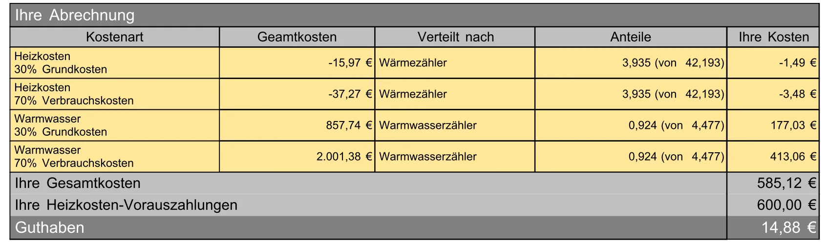 Die Bestimmung dieses Verhältnisses erfolgt ja augenscheinlich durch die Software. Nur leider weiß ich nicht welche einstellungen hier getroffen werden können um diese Parameter zu justieren. Ich bekomme nun stets einen negativen Heizkostenanteil, siehe nachfolgend: