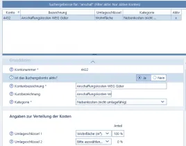 Stammdaten-->Gebäude-->Umlagekonto und Festlegung der Verteilung-->NeuFunktioniert bei uns hervorragend.