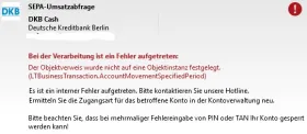 Die Umsatzabfrage bringt eine Fehlermeldung. Der Abruf von Daueraufträgen und Terminüberweisungen läuft durch.