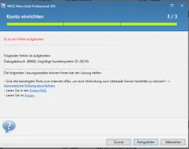 Dialogabruch (9800) Ungültige Kundensystem ID (9210)