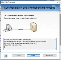 • Ich habe jetzt in der HBCI-Kontaktübersicht den Screenparser-Kontakt für die Visakarte im Dialog DDBAC-Admin über >bearbeiten< und >synchronisieren< geändert bekommen. Ich bekam einen HInweis, dass der Hinweis auf 2-schritt umgestellt werden müsste. Neues Verfahren ist jetzt "921 - TAN2go". Synchronisation ist aber nicht erfolgreich. TAN2go-App poppt auf, aber die Synchronisation am PC war vorher schon auf Fehler gelaufen.