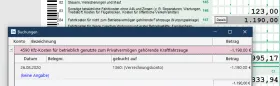 - wählen die Kategorie "Kosten für die betriebl. Nutzung d. privaten Kfz" (Buchungsvariante 2) bzw. "4590/6590 Kfz-Kosten für betrieblich genutzte zum Privatvermögen gehörende Kraftfahrzeuge" (Buchungsvariante 3),