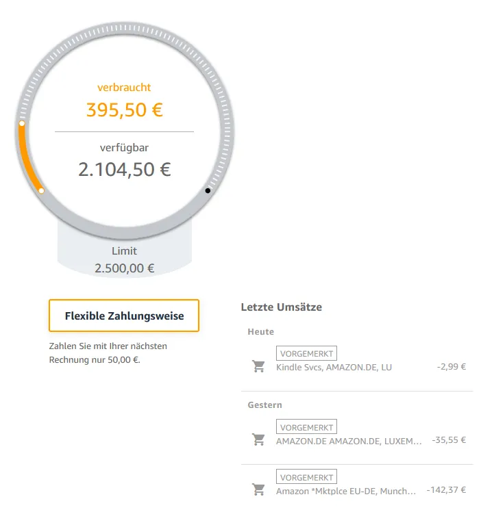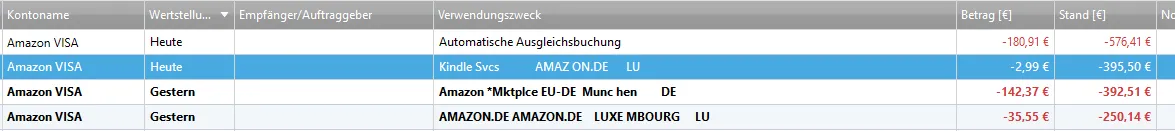 Auf der Amazon-VISA Karte sind gestern und heute 3 Buchungen erfolgt bzw. vorgemerkt: