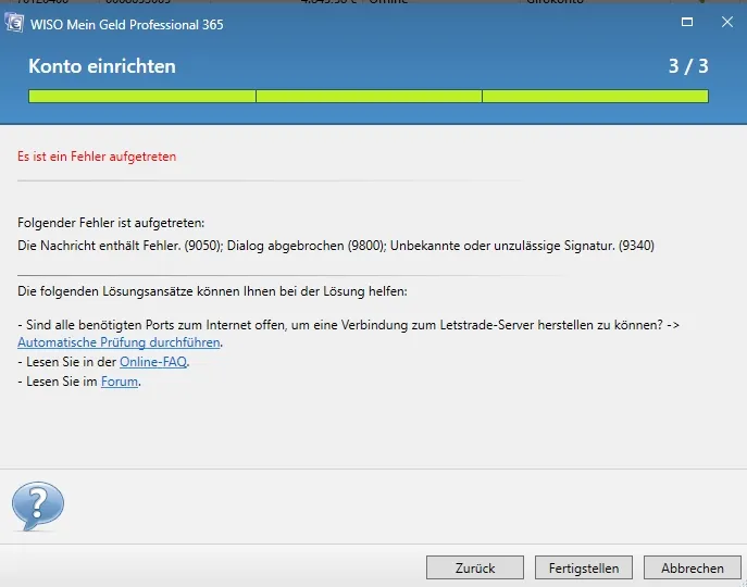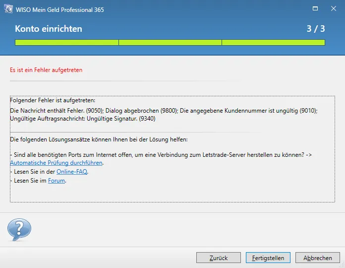 Wenn ich nun das Konto wieder auf FinTS (HBCI) PIN/TAN umstellen will, bekomme ich folgende Fehlermeldung: (egal ob mit alter Kontonummer oder dem neuen Alias der Bank, wobei hier dann noch die Meldung "Kundennummer ist ungültig" kommt)