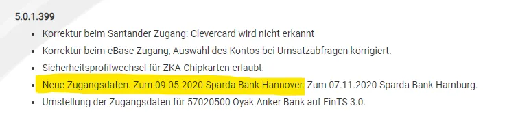 bereits mit dem Let's Trade Update 399 wurde das Update für die Sparda Bank gemacht.