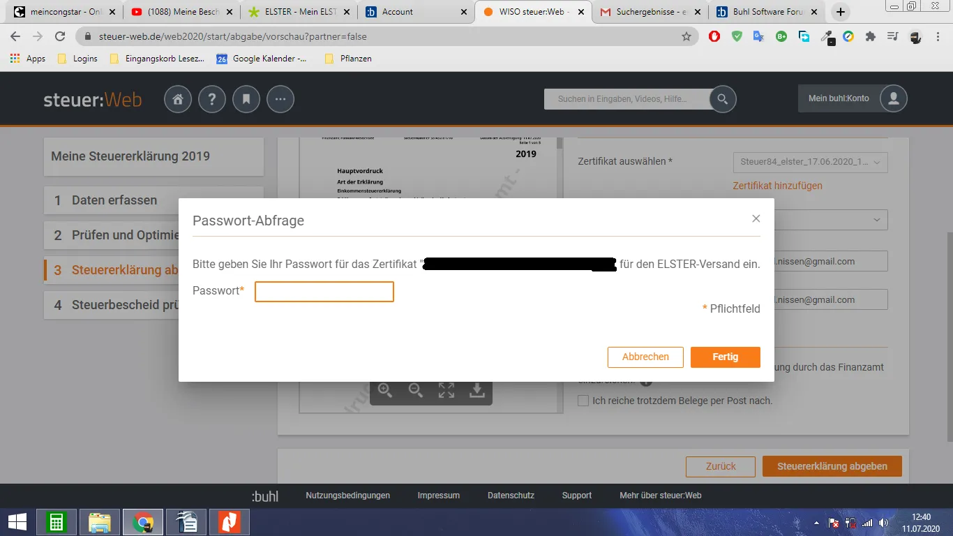 habe das Produkt Steuer:WEB nur leider ist das Passwort immer fehlerhaft bewertet worden. Es ist aber der korrekte Abruf Code mehrmals korrekt eingegeben worden! Zwischenzeitlich habe ich auch einen Neuen besorgt. Kann es sein das der Abruf Code nicht erkannt wird oder hier nach einem anderen Passwort gefragt wird. Screenshot lege ich dem Schreiben bei.