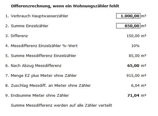 Wie bekomme ich es geregelt das die Differenz zwischen Gesamtverbrauch und der Verbrauch des Zwischenzählers der 2 Wohnung zugeordnet wird??