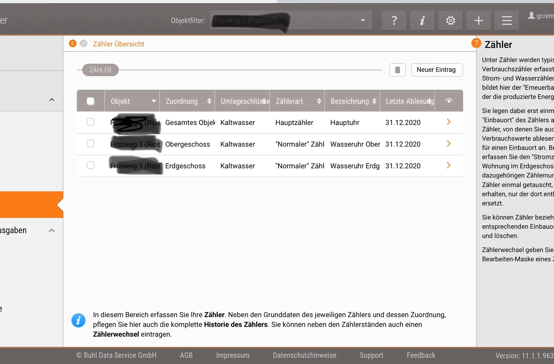 1 Zwischenzähler worüber der Verbrauch 1 Wohnung läuft,