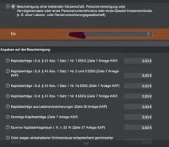 Ich habe eine Einzel Steuerbescheinigung einer leistenden Körperschaft (Aktien Fonds) und da steht auf der Bescheinigung ein negativer Wert drauf, denn ich in Zeile 10 Anlage KAP) eintragen muss. Davor steht Paragraf 20 abs. 1 Nr. 6 Satz 9 EStG