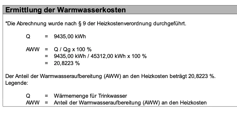 Heizkostenabrechnung - Anteil Warmwasserkosten wird gegenüber Vorjahr anders ermittelt