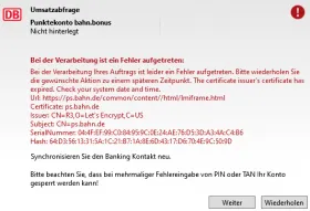 bekomme bei der Umsatzabfrage des bahn.comfort Punktekontos die Fehlermeldung "Ungültiger URI: Der Hostname konnte nicht analysiert werden." (Kontoeinrichtung funktioniert).